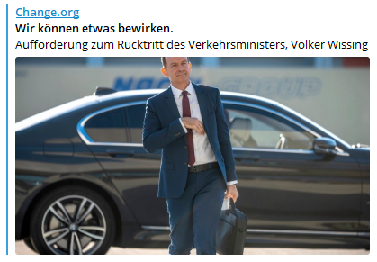 Change.org: "Aufforderung zum Rücktritt des Verkehrsministers, Volker Wissing"