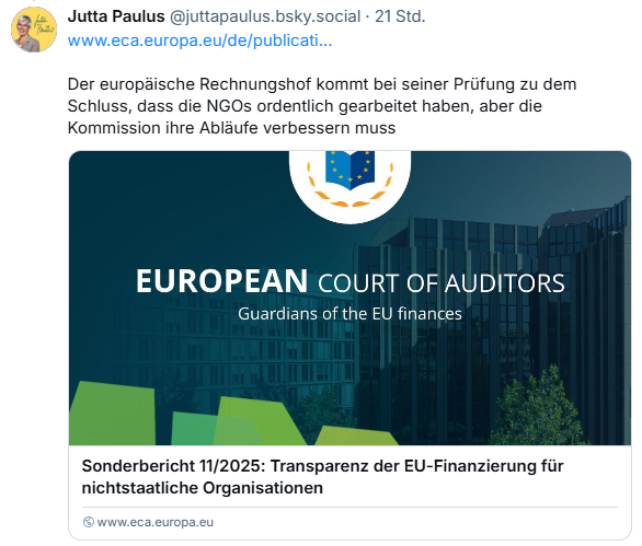 Die EU-Kommission hat zudem im April 2025 klargestellt, dass sie NGOs weder aufgefordert noch verpflichtet hat, Lobbyarbeit bei EU-Parlamentariern zu leisten https://lnkd.in/dZwEgCHN.