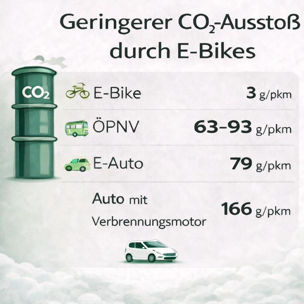 E-Bikes sparen mehr Ressourcen, verursachen deutlich geringere